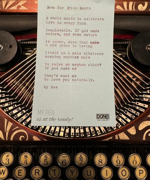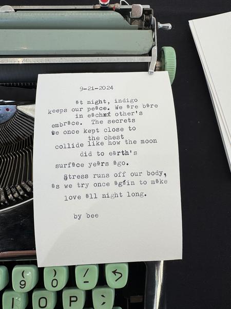 Hi friends. This is Bee with Bee's Poesys can call me Bee! As a typewriter poet, I capture your buzzworthy experiences forever on nice paper.