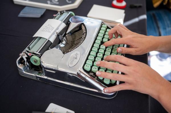 At your event, I set up my trusty typewriter, creating a space where guests can share as little or as much of their story as they like. In just 2-3 minutes, I craft a personalized poem, typed on vintage paper, that they can take home. From joyful surprises to tear-filled moments of recognition, these poems spark connection, intimacy, and wonder. I can write an average of 20 poems an hour, giving each guest a piece of art uniquely theirs.